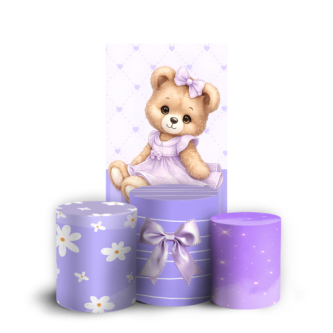 Capas Faixa Lateral e Trio Cilindro Sublimado Vest Facil - Ursinha Lilas