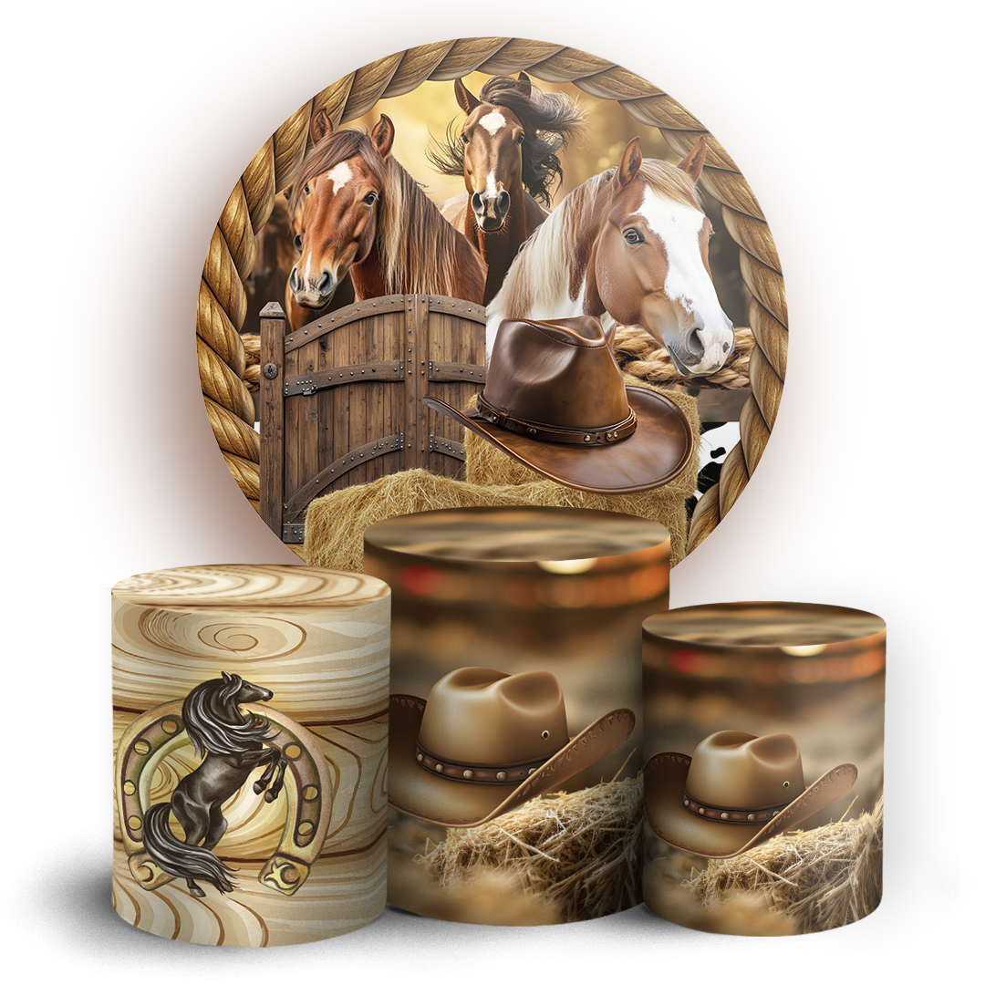 Capas Painel Redondo e Trio Cilindro Sublimado - Cavalo