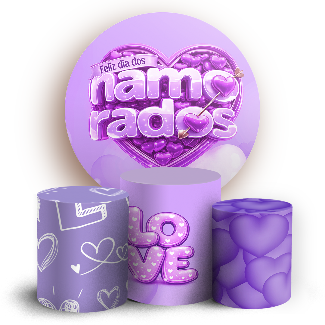 Capas Painel Redondo e Trio Cilindro Sublimado - Dia Dos Namorados