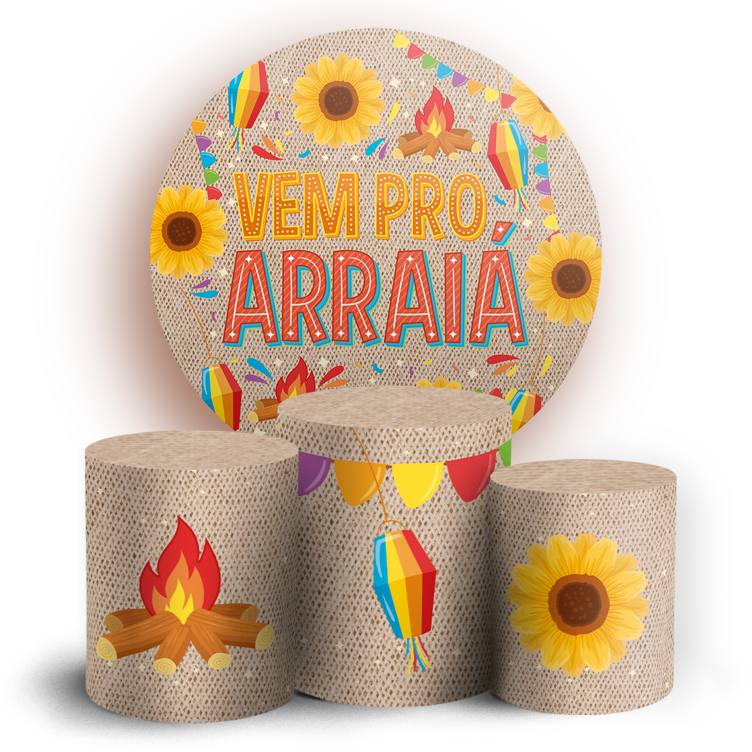 Capas Painel Redondo e Trio Cilindro Sublimado - Festa Junina