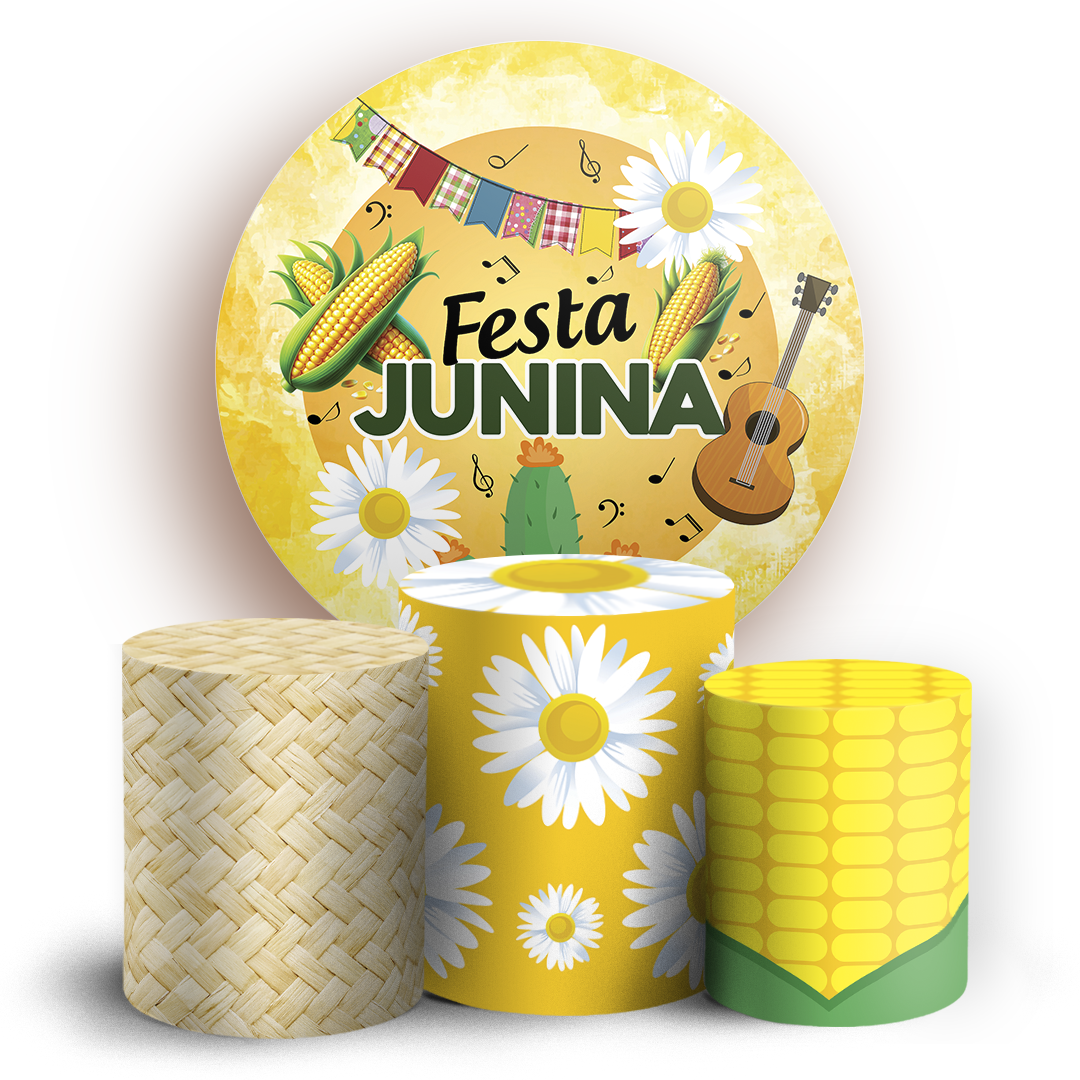 Capas Painel Redondo e Trio Cilindro Sublimado - Festa Junina