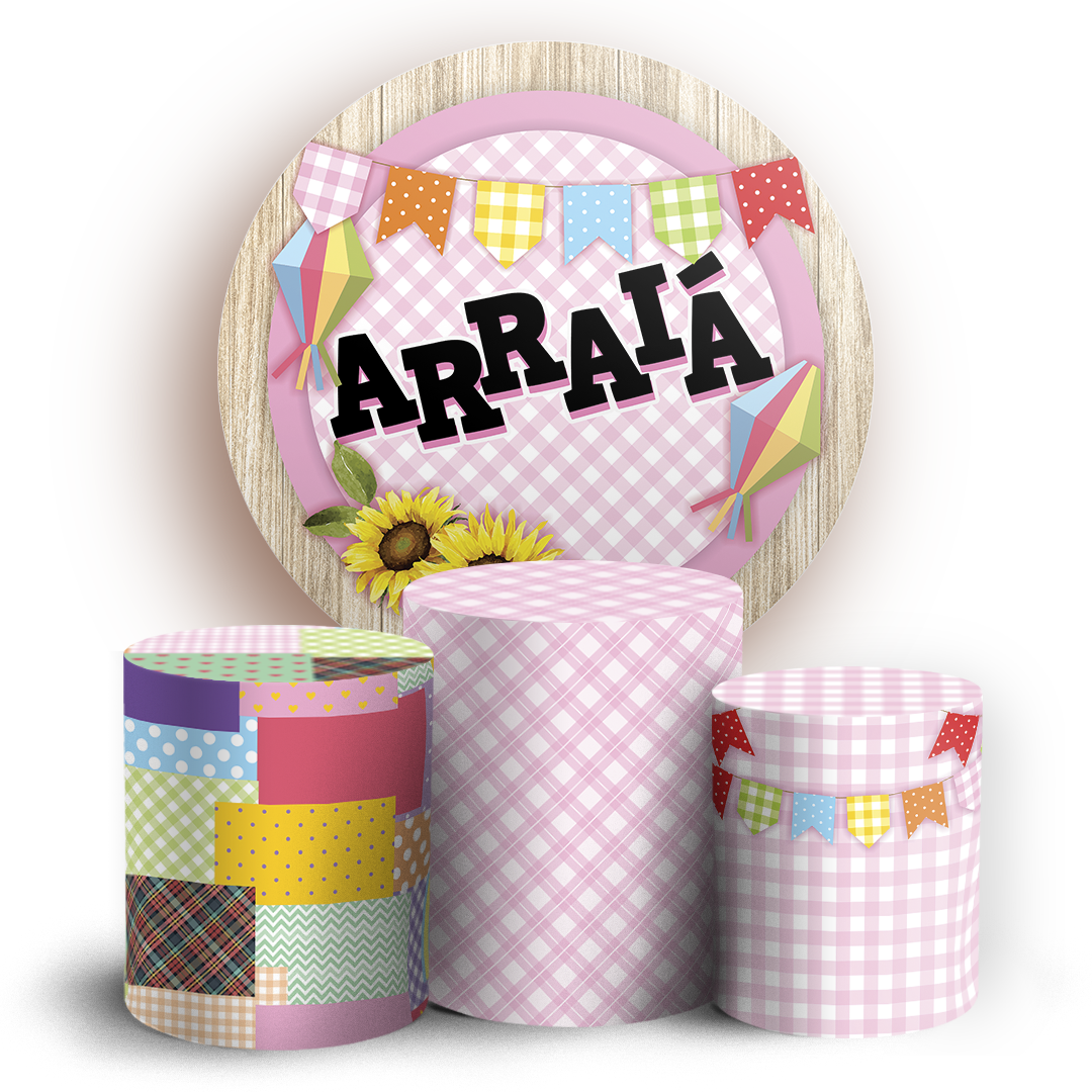Capas Painel Redondo e Trio Cilindro Sublimado - Festa Junina