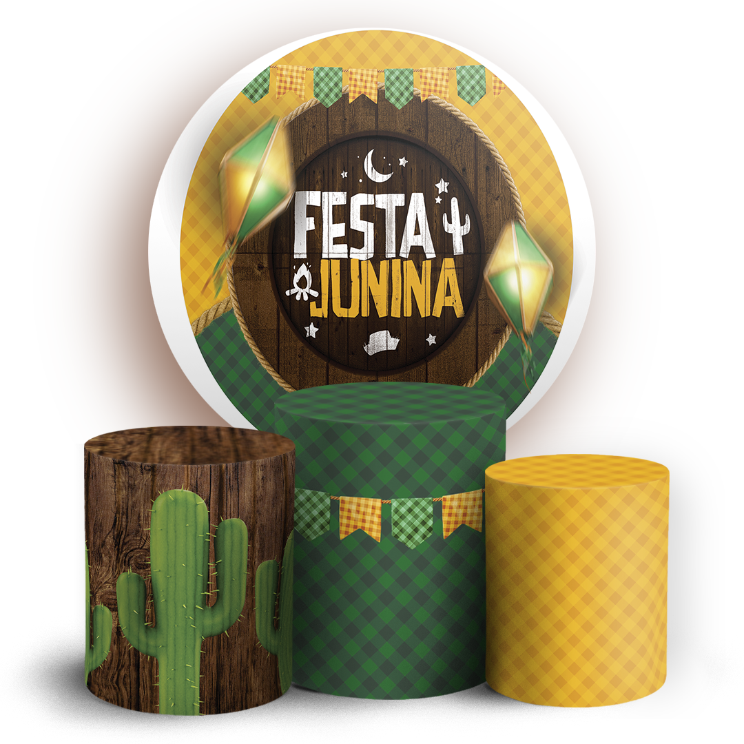 Capas Painel Redondo e Trio Cilindro Sublimado - Festa Junina
