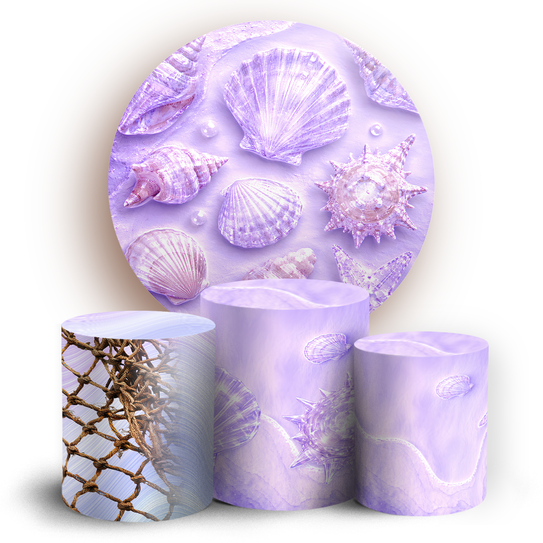 Capas Painel Redondo e Trio Cilindro Sublimado - Fundo do Mar Conchas
