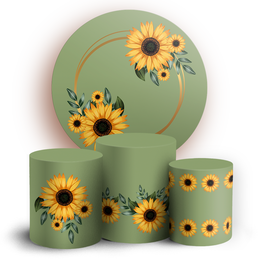 Capas Painel Redondo e Trio Cilindro Sublimado - Girassol Floral