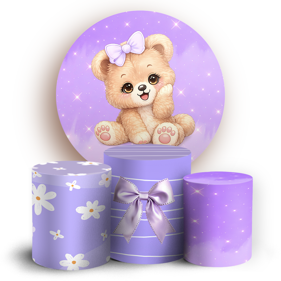 Capas Painel Redondo e Trio Cilindro Sublimado - Ursinha Lilas