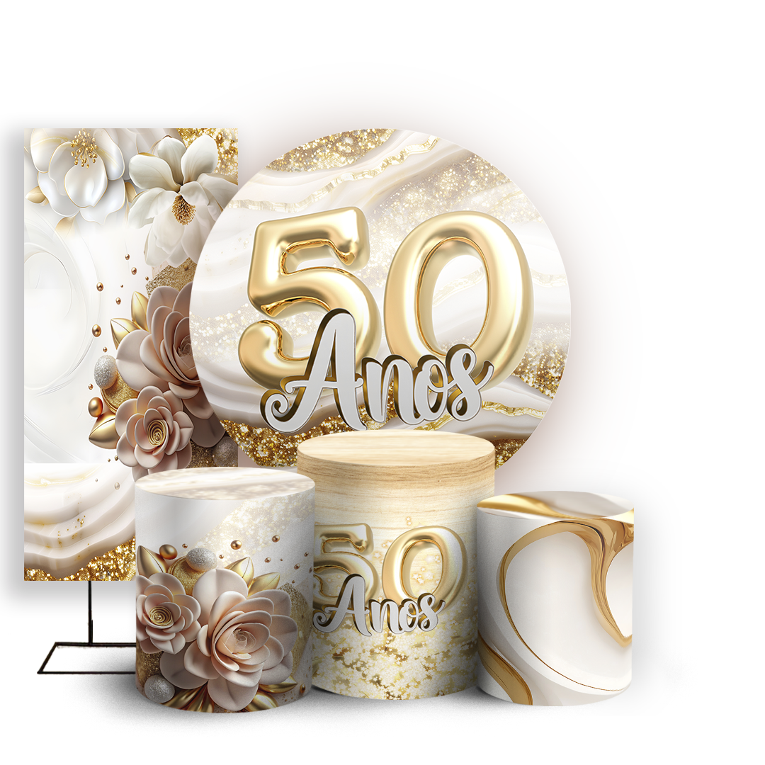 Capas Painel Redondo Trio Cilindro e Faixa Lateral Sublimado - 50 Anos