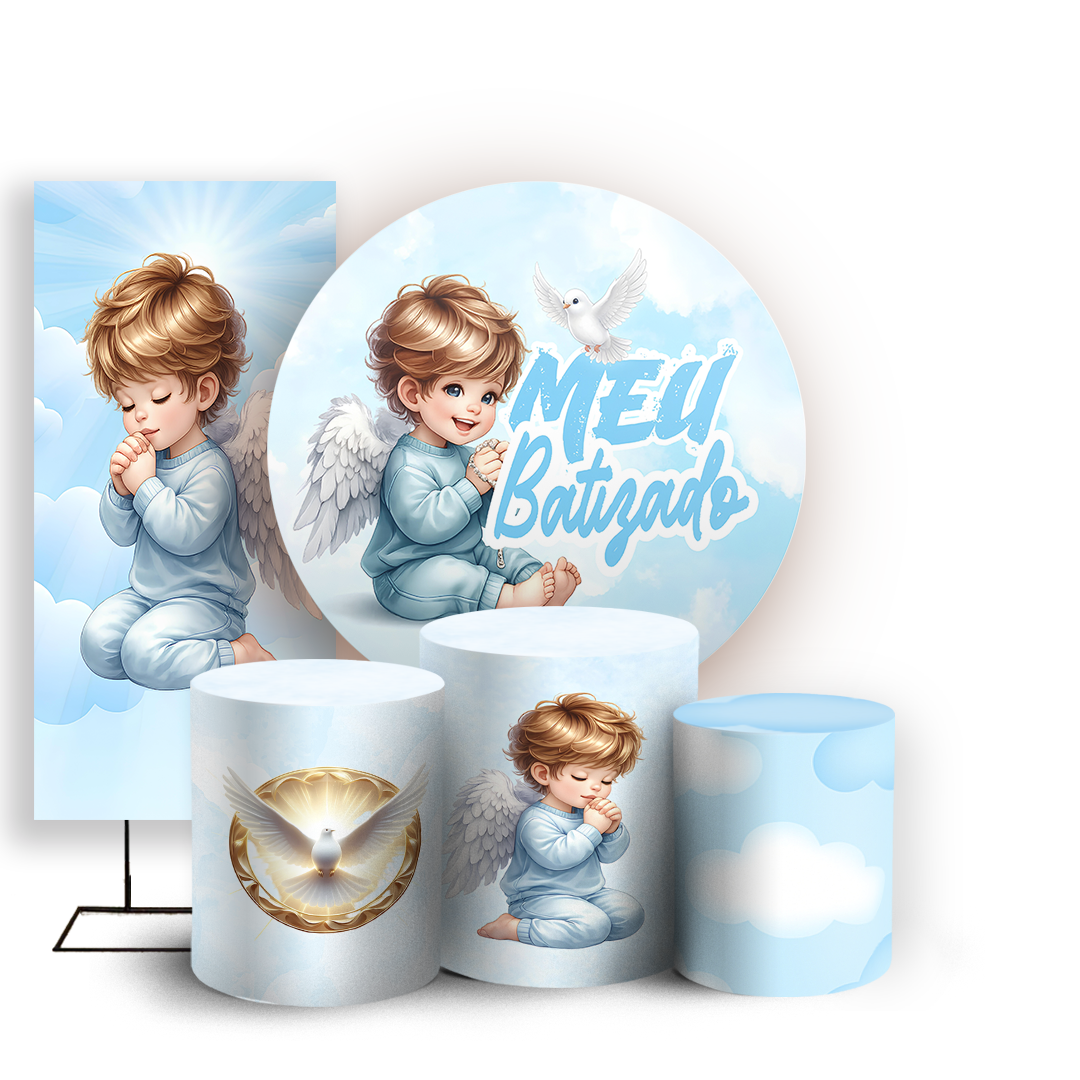 Capas Painel Redondo Trio Cilindro e Faixa Lateral Sublimado - Batizado