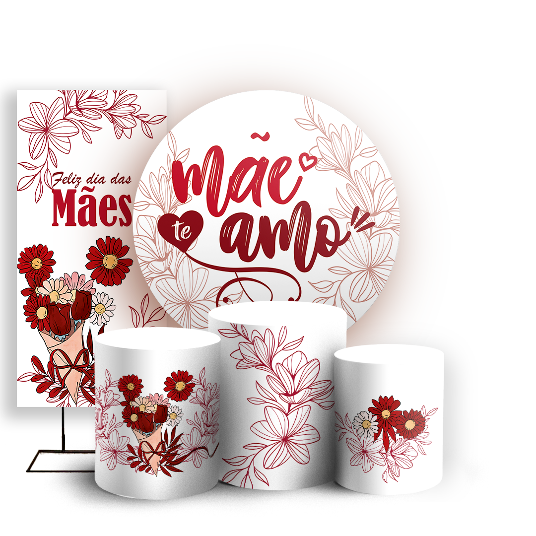 Capas Painel Redondo Trio Cilindro e Faixa Lateral Sublimado - Dia das Mães
