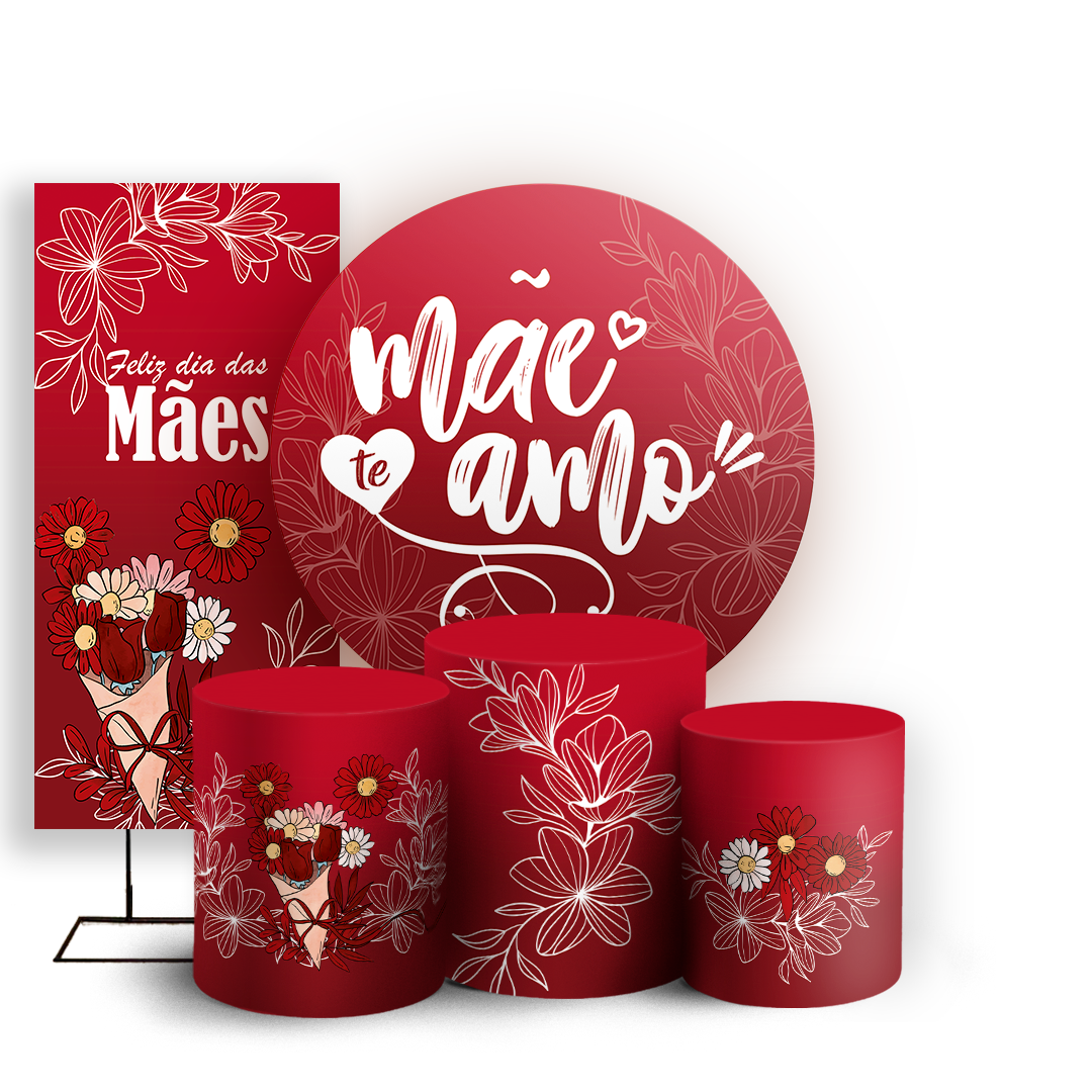 Capas Painel Redondo Trio Cilindro e Faixa Lateral Sublimado - Dia das Mães