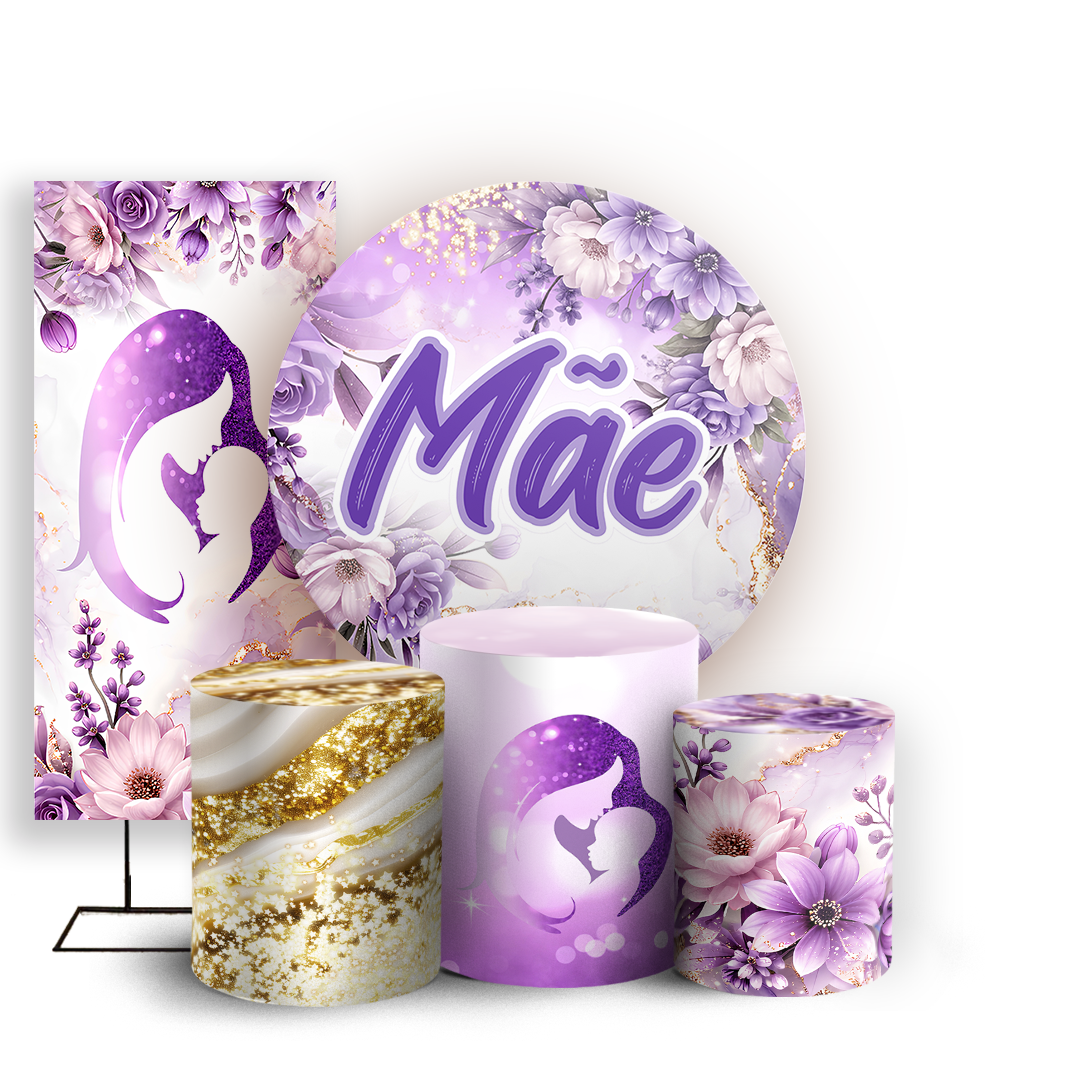 Capas Painel Redondo Trio Cilindro e Faixa Lateral Sublimado - Dia Das Mães