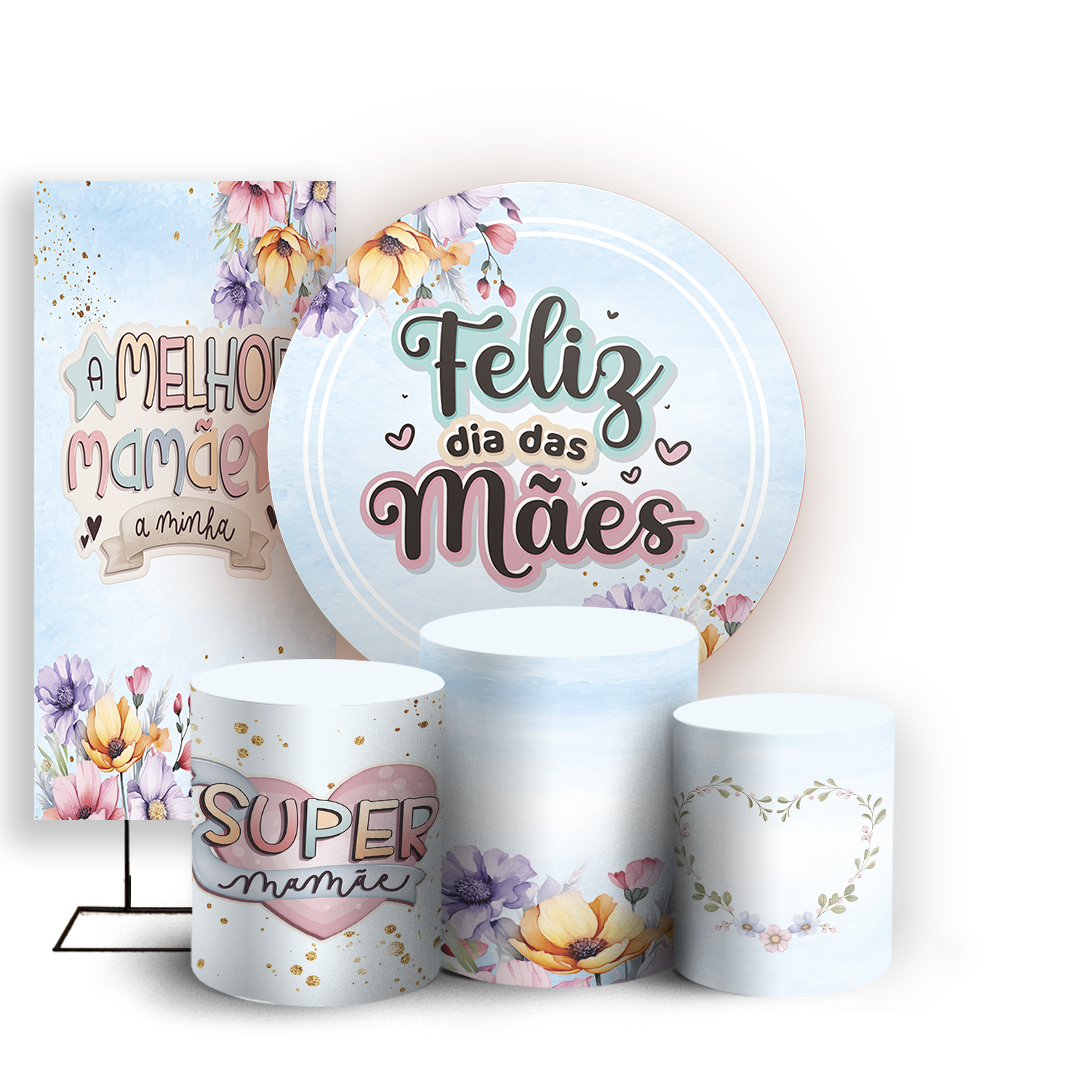 Capas Painel Redondo Trio Cilindro e Faixa Lateral Sublimado - Dias das Mães