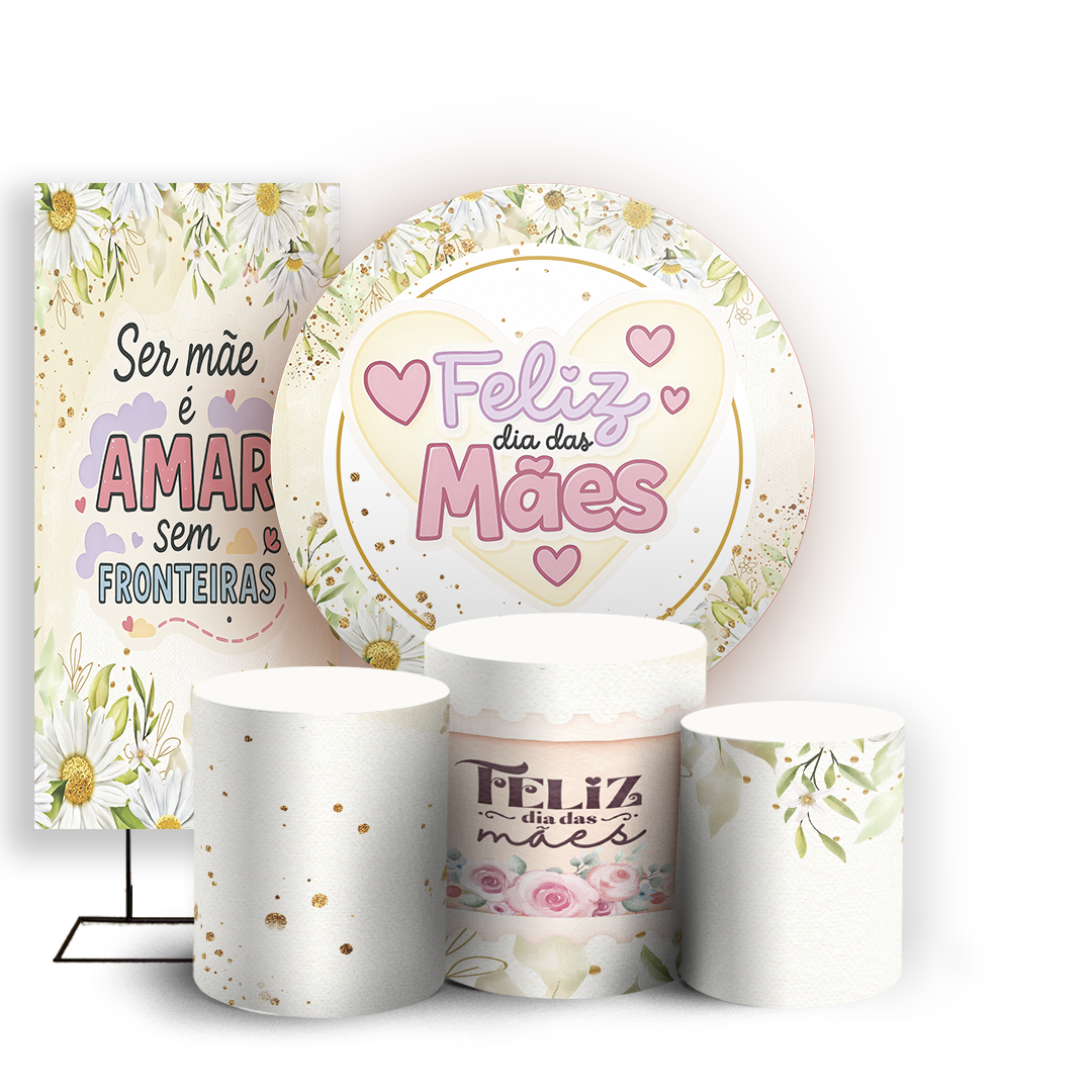 Capas Painel Redondo Trio Cilindro e Faixa Lateral Sublimado - Dias das Mães