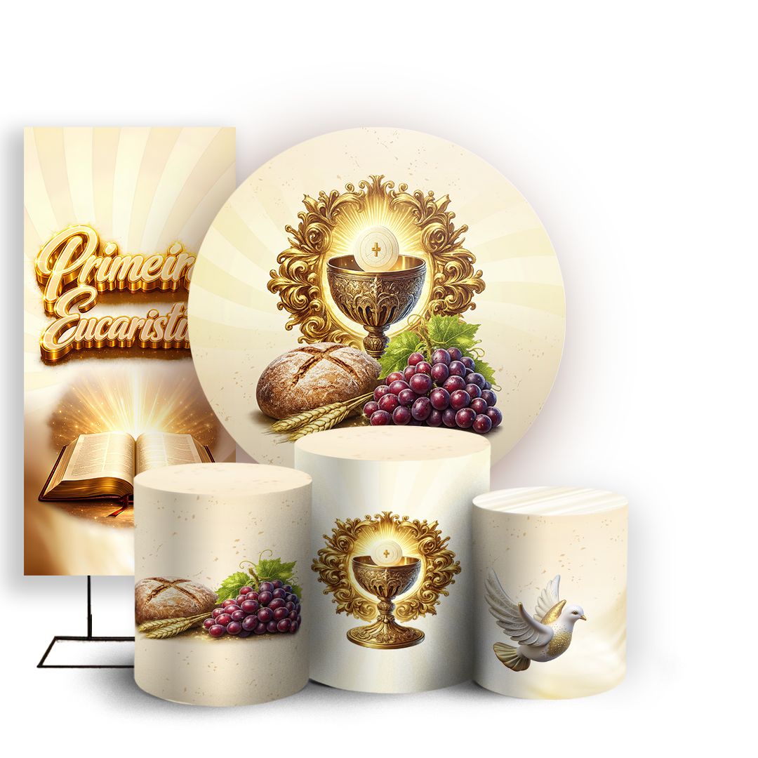 Capas Painel Redondo Trio Cilindro e Faixa Lateral Sublimado - Eucaristia