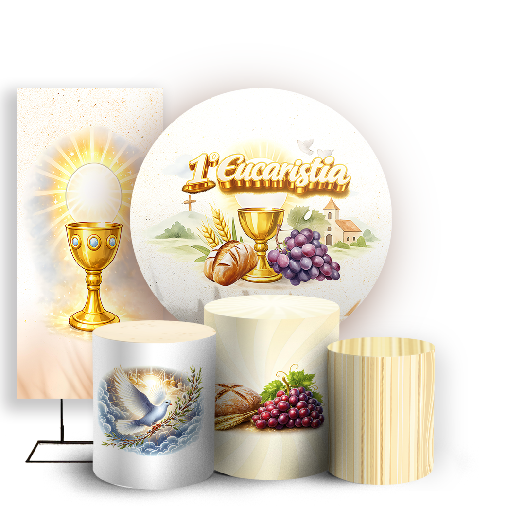 Capas Painel Redondo Trio Cilindro e Faixa Lateral Sublimado - Eucaristia