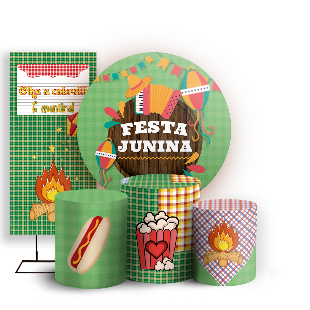 Capas Painel Redondo Trio Cilindro e Faixa Lateral Sublimado - Festa Junina