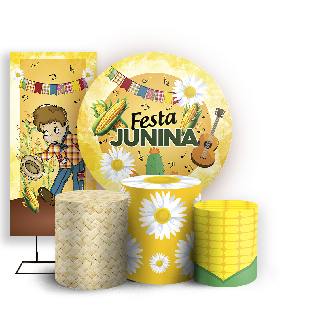 Capas Painel Redondo Trio Cilindro e Faixa Lateral Sublimado - Festa Junina