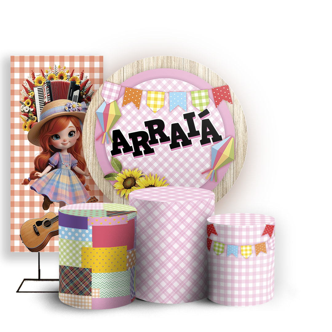 Capas Painel Redondo Trio Cilindro e Faixa Lateral Sublimado - Festa Junina