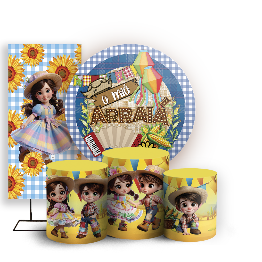 Capas Painel Redondo Trio Cilindro e Faixa Lateral Sublimado - Festa Junina