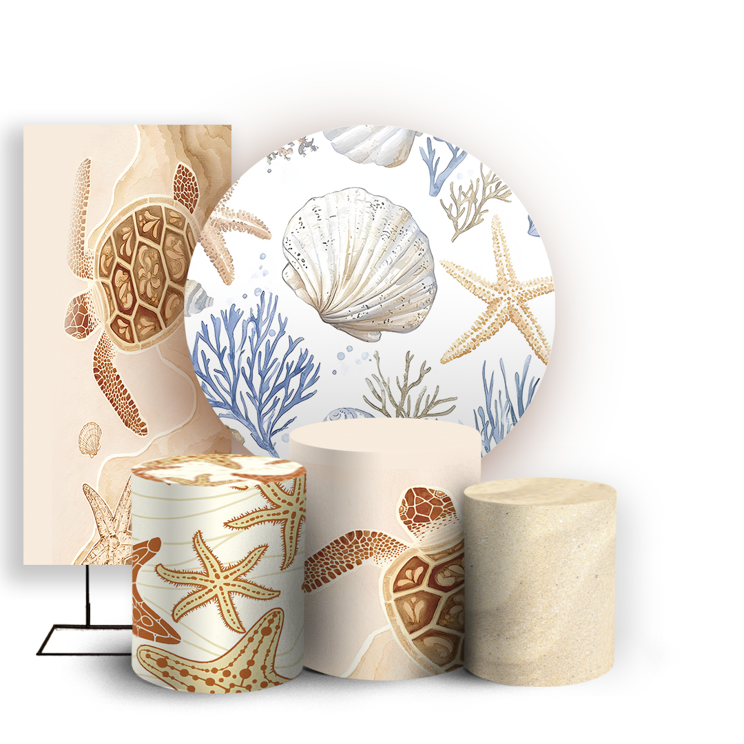 Capas Painel Redondo Trio Cilindro e Faixa Lateral Sublimado - Fundo do Mar Conchas