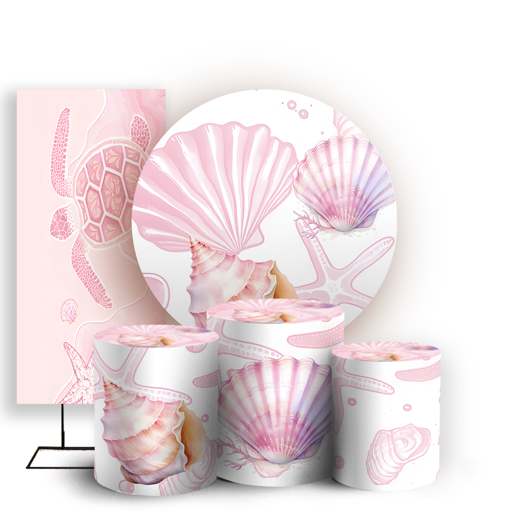 Capas Painel Redondo Trio Cilindro e Faixa Lateral Sublimado - Fundo do Mar Conchas