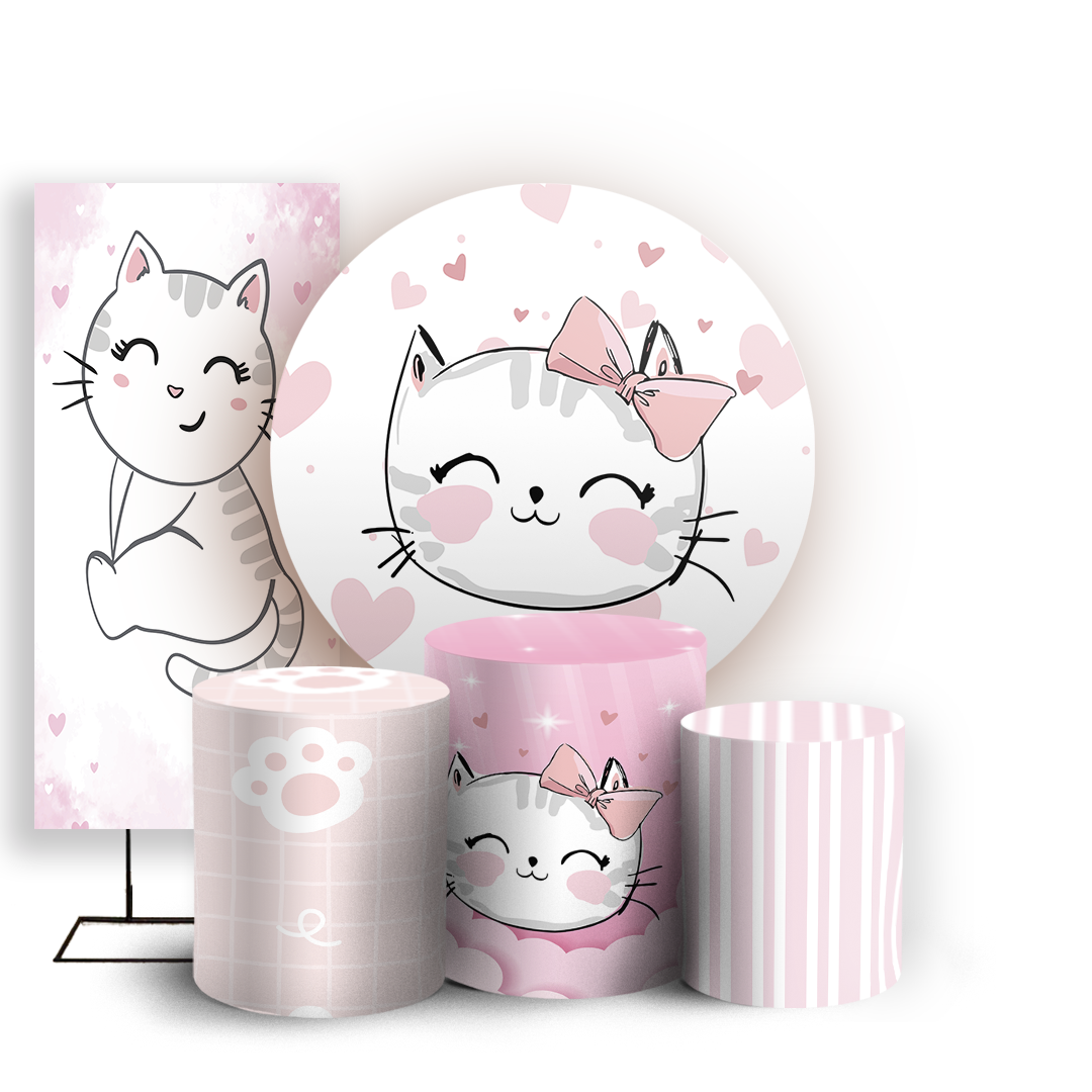 Capas Painel Redondo Trio Cilindro e Faixa Lateral Sublimado - Gatinha