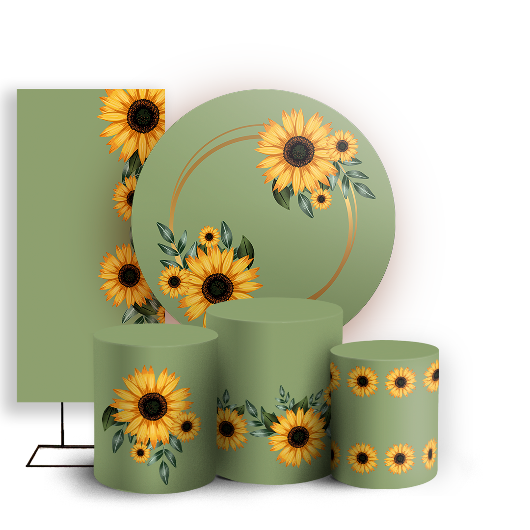 Capas Painel Redondo Trio Cilindro e Faixa Lateral Sublimado - Girassol Floral