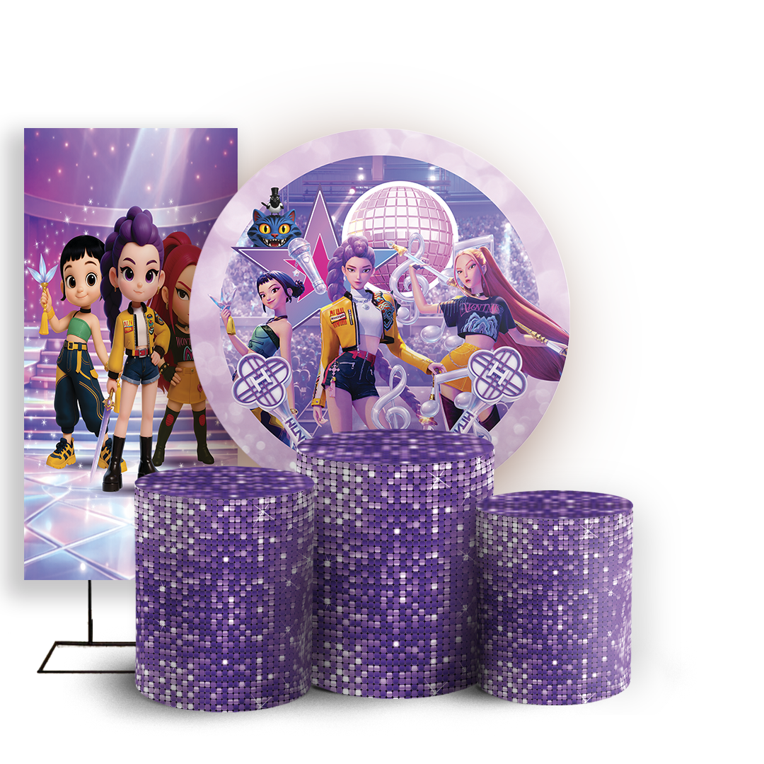 Capas Painel Redondo Trio Cilindro e Faixa Lateral Sublimado - K Pop