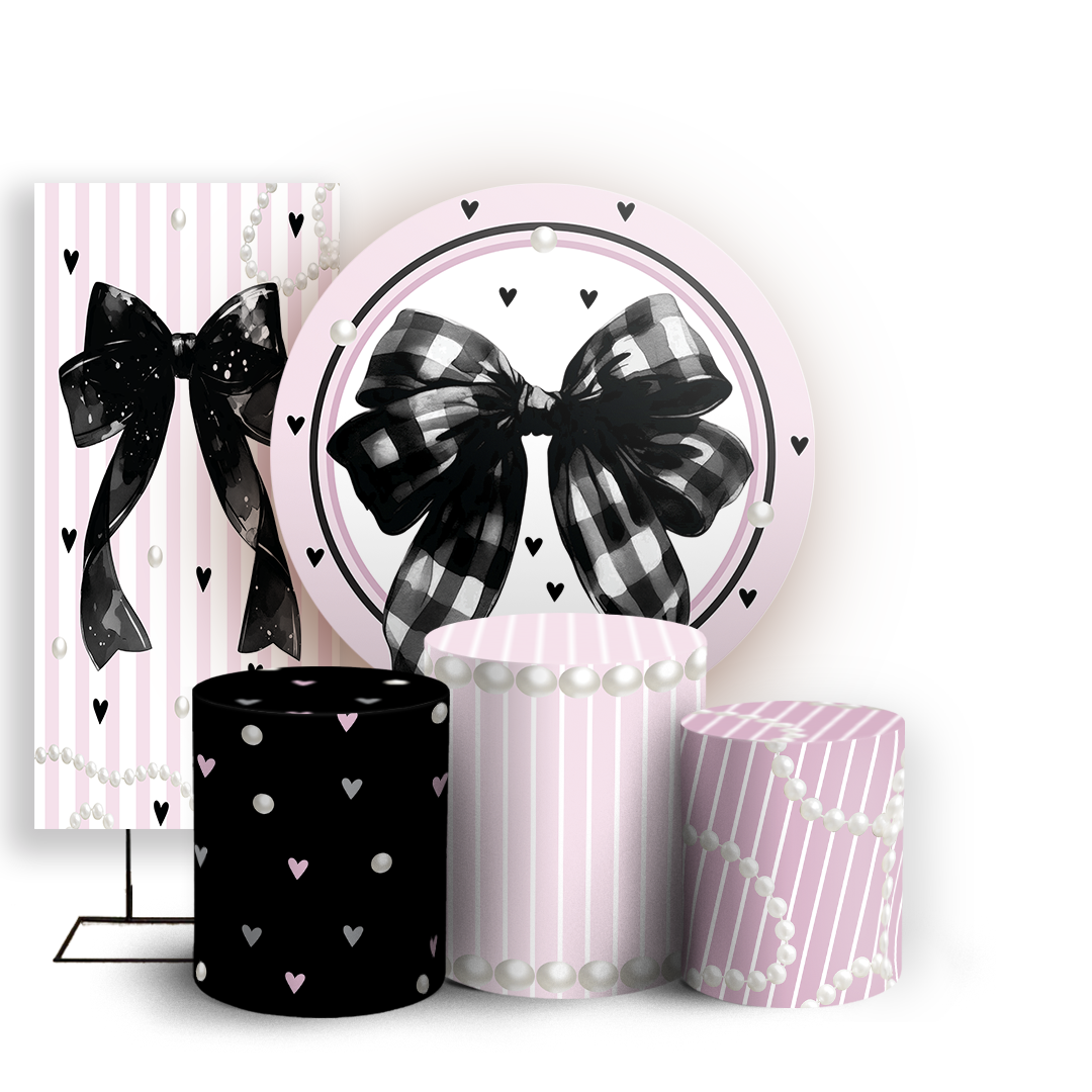 KIT Redondo Trio e Faixa Sublimado - Laços-Rosa-E-Preto