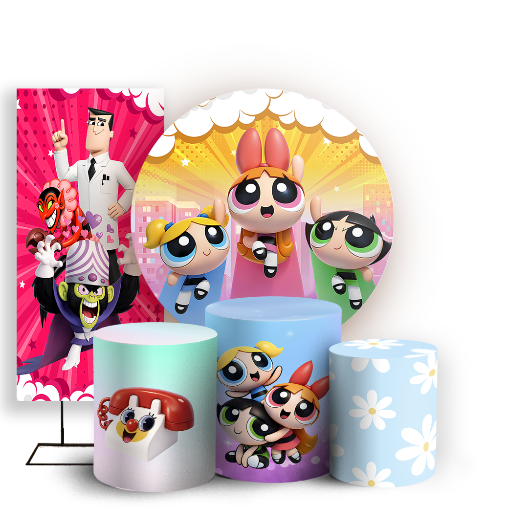 Capas Painel Redondo Trio Cilindro e Faixa Lateral Sublimado - Meninas Super Poderosas