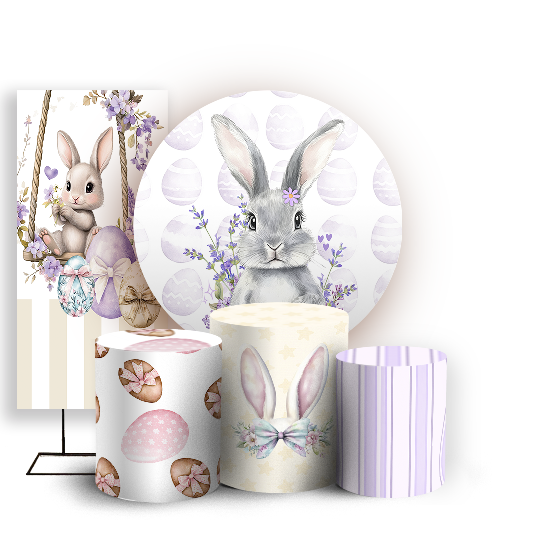 Capas Painel Redondo Trio Cilindro e Faixa Lateral Sublimado - Pascoa