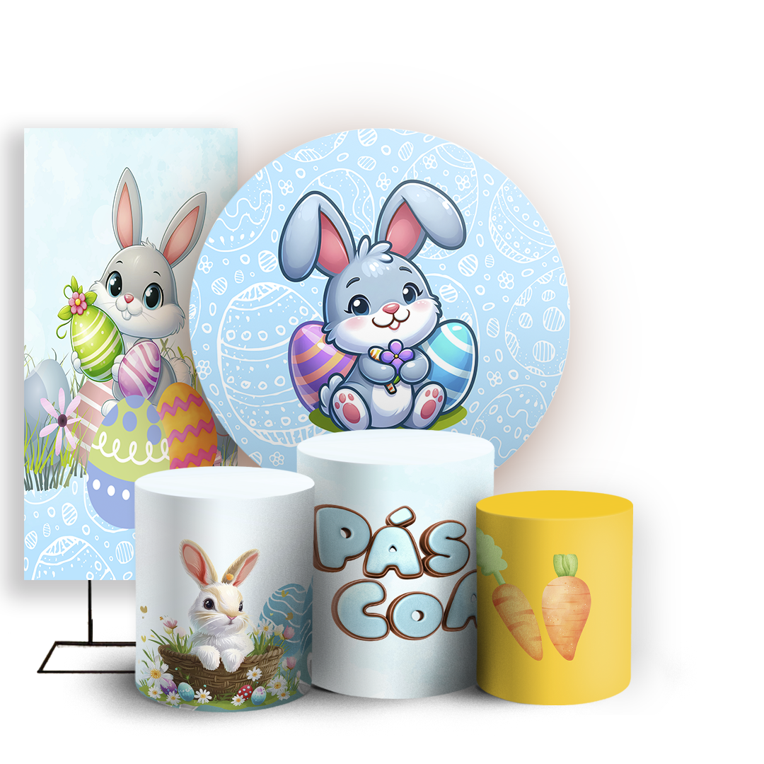 Capas Painel Redondo Trio Cilindro e Faixa Lateral Sublimado - Pascoa