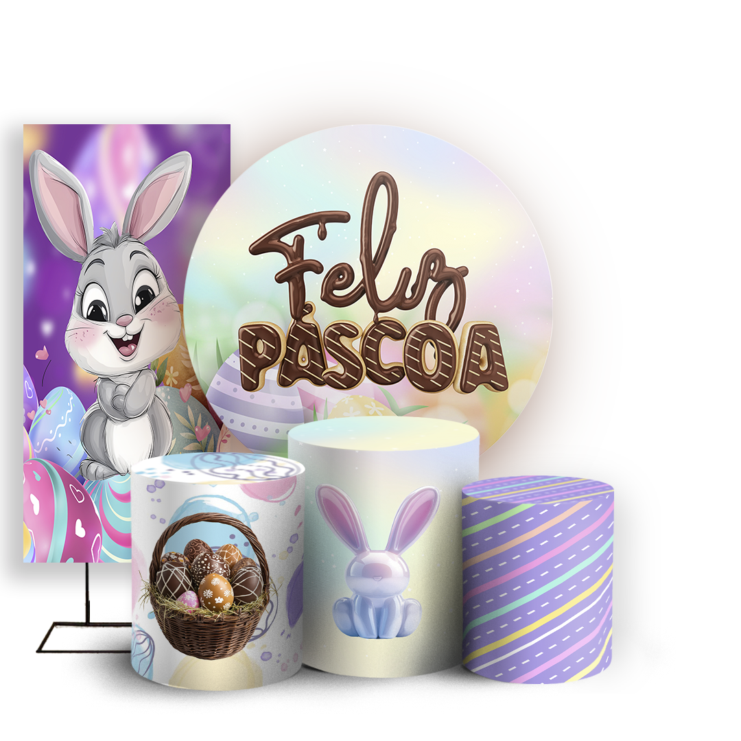 Capas Painel Redondo Trio Cilindro e Faixa Lateral Sublimado - Pascoa