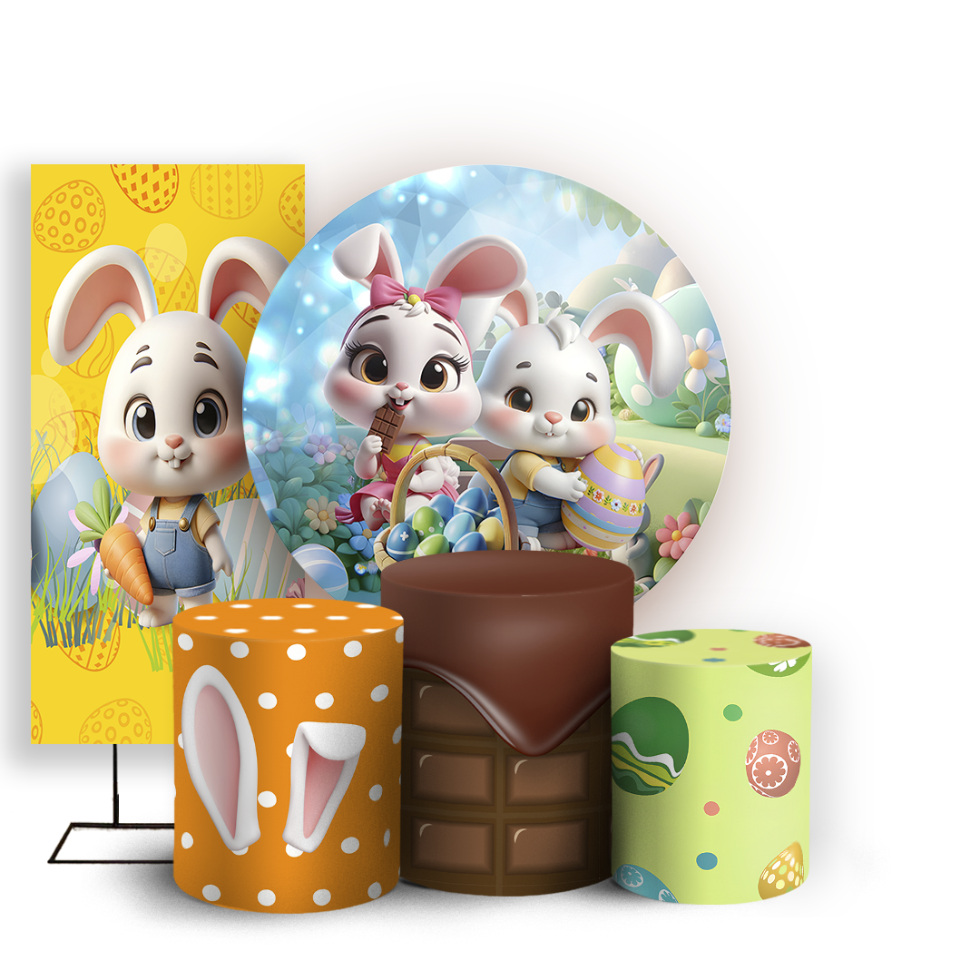 Capas Painel Redondo Trio Cilindro e Faixa Lateral Sublimado - Pascoa