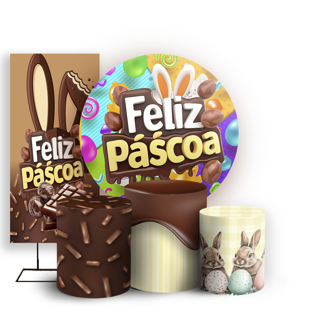 Capas Painel Redondo Trio Cilindro e Faixa Lateral Sublimado - Pascoa