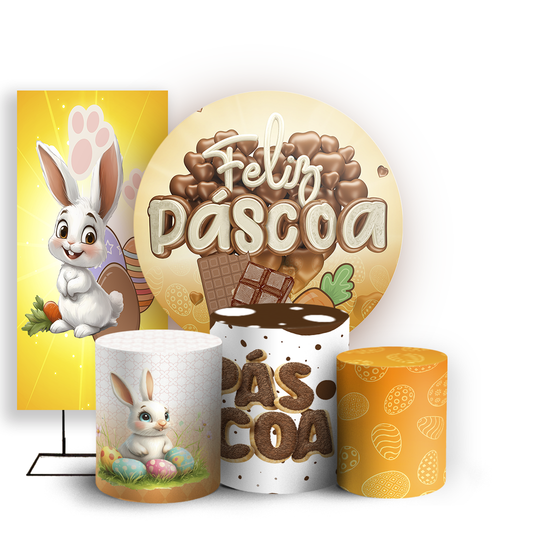 Capas Painel Redondo Trio Cilindro e Faixa Lateral Sublimado - Pascoa