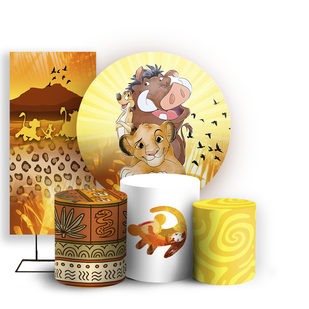 Capas Painel Redondo Trio Cilindro e Faixa Lateral Sublimado - Rei Leão