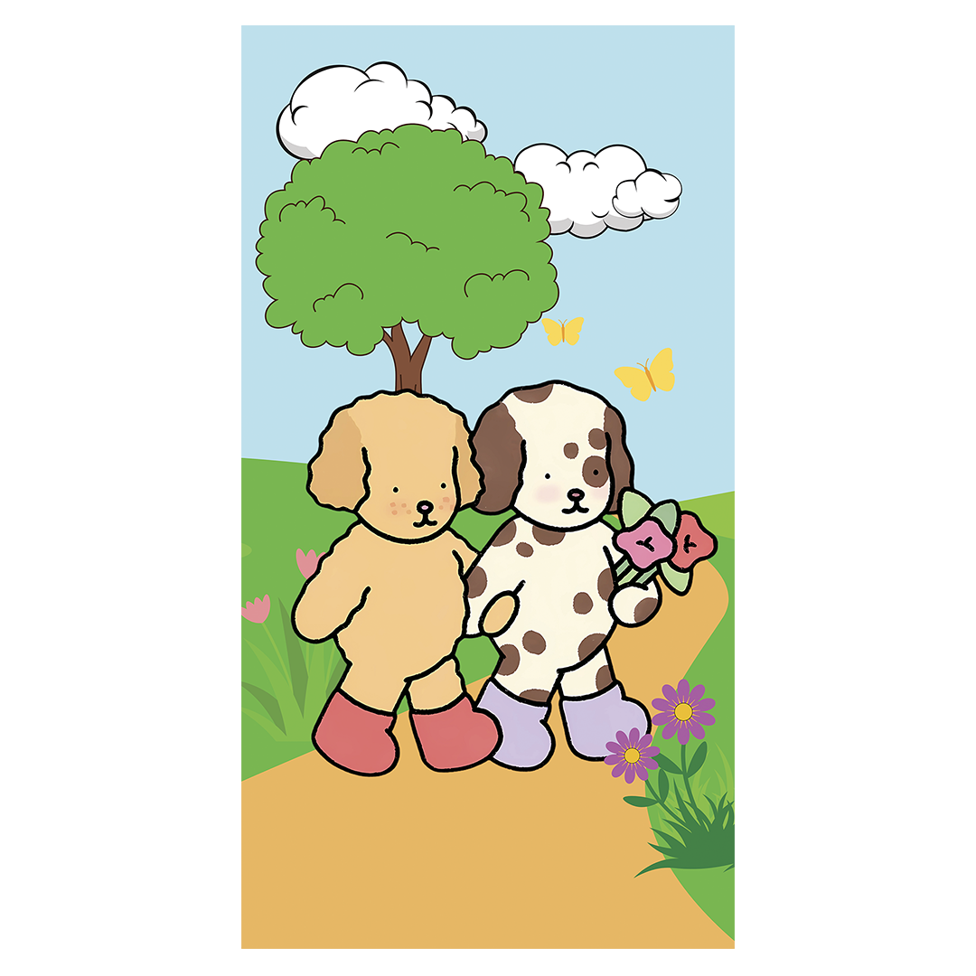 Acabamento simples em overloque por todos os lados, respeitamos uma margem de aproximadamente 5 cm dentro da imagem pra uma melhor fixação do produto.