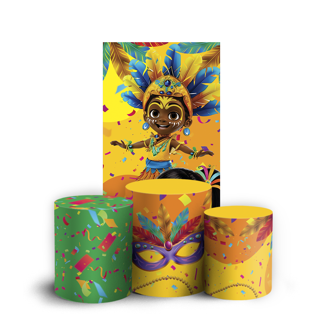 Capa sublimada de painel redondo e trio cilindro, confeccionados em tecido helanca 225g, 100% poliéster, com acabamento em elástico.