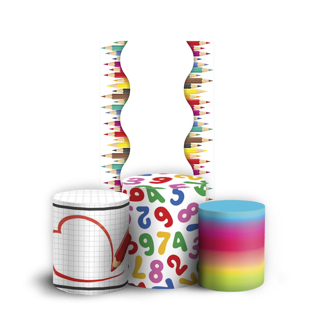 Itens do KIT: 1 Faixa Lateral Vest Facil: 150larg x 200altura em centimetros. 1 Trio Cilindro: G= 80alt x 50larg, M= 58alt x 44larg, P= 45alt x 38larg. Capa sublimada de painel redondo e trio cilindro, confeccionados em tecido helanca 225g, 100% poliéster, com acabamento em elástico. Observação: Não inclui estrutura ou suporte.