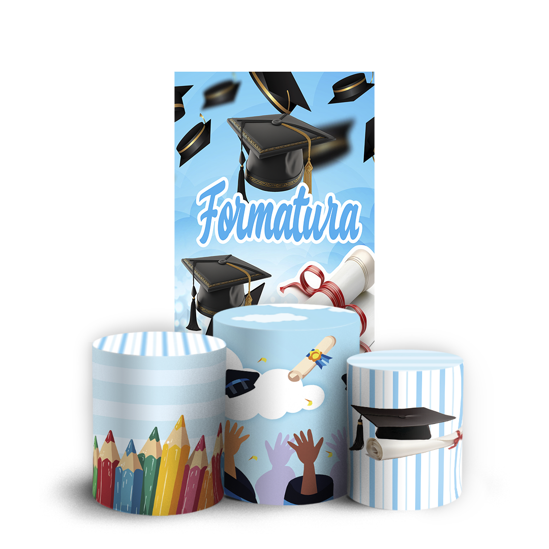 Itens do KIT: 1 Faixa Lateral Vest Facil: 150larg x 200altura em centimetros. 1 Trio Cilindro: G= 80alt x 50larg, M= 58alt x 44larg, P= 45alt x 38larg. Capa sublimada de painel redondo e trio cilindro, confeccionados em tecido helanca 225g, 100% poliéster, com acabamento em elástico. Observação: Não inclui estrutura ou suporte.