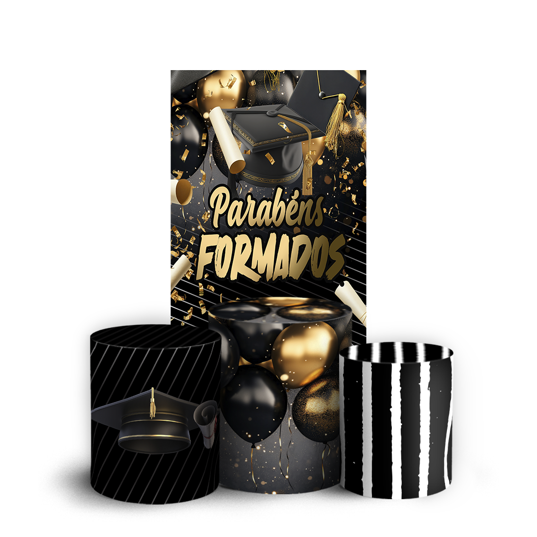 Itens do KIT: 1 Faixa Lateral Vest Facil: 150larg x 200altura em centimetros. 1 Trio Cilindro: G= 80alt x 50larg, M= 58alt x 44larg, P= 45alt x 38larg. Capa sublimada de painel redondo e trio cilindro, confeccionados em tecido helanca 225g, 100% poliéster, com acabamento em elástico. Observação: Não inclui estrutura ou suporte.