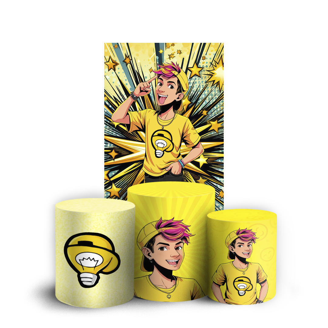 Itens do KIT: 1 Faixa Lateral Vest Facil: 150larg x 200altura em centimetros. 1 Trio Cilindro: G= 80alt x 50larg, M= 58alt x 44larg, P= 45alt x 38larg. Capa sublimada de painel redondo e trio cilindro, confeccionados em tecido helanca 225g, 100% poliéster, com acabamento em elástico. Observação: Não inclui estrutura ou suporte.