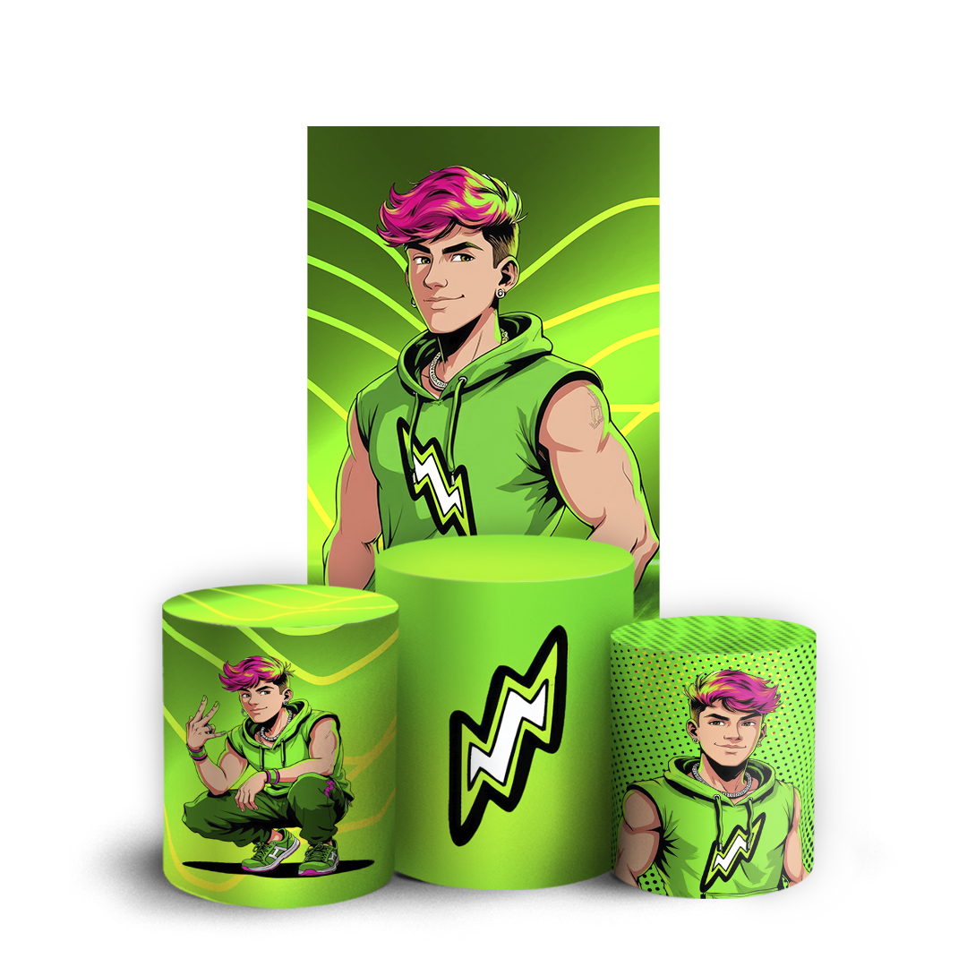 Itens do KIT: 1 Faixa Lateral Vest Facil: 150larg x 200altura em centimetros. 1 Trio Cilindro: G= 80alt x 50larg, M= 58alt x 44larg, P= 45alt x 38larg. Capa sublimada de painel redondo e trio cilindro, confeccionados em tecido helanca 225g, 100% poliéster, com acabamento em elástico. Observação: Não inclui estrutura ou suporte.