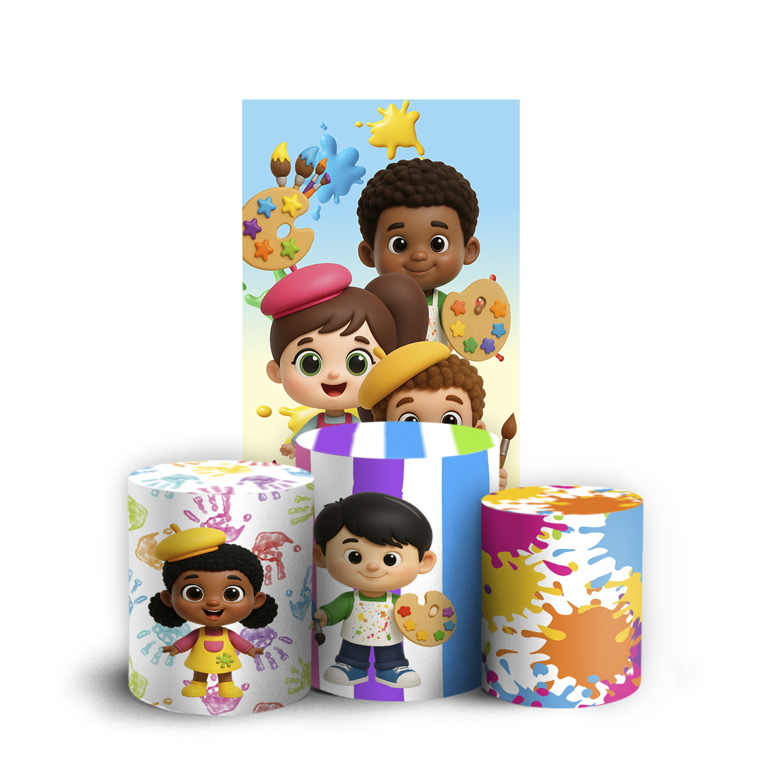Itens do KIT: 1 Faixa Lateral Vest Facil: 150larg x 200altura em centimetros. 1 Trio Cilindro: G= 80alt x 50larg, M= 58alt x 44larg, P= 45alt x 38larg. Capa sublimada de painel redondo e trio cilindro, confeccionados em tecido helanca 225g, 100% poliéster, com acabamento em elástico. Observação: Não inclui estrutura ou suporte.