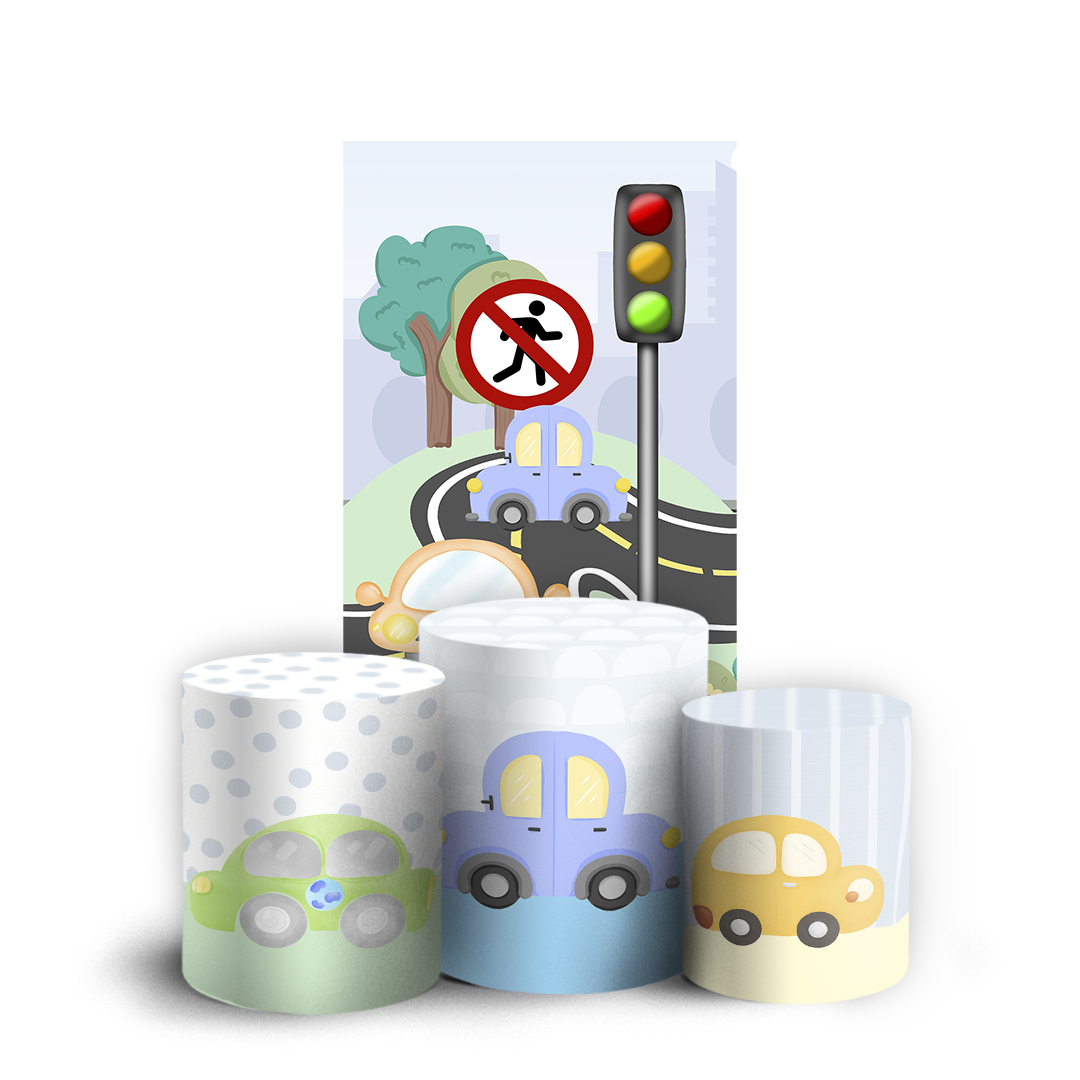 Itens do KIT: 1 Faixa Lateral Vest Facil: 150larg x 200altura em centimetros. 1 Trio Cilindro: G= 80alt x 50larg, M= 58alt x 44larg, P= 45alt x 38larg. Capa sublimada de painel redondo e trio cilindro, confeccionados em tecido helanca 225g, 100% poliéster, com acabamento em elástico. Observação: Não inclui estrutura ou suporte.
