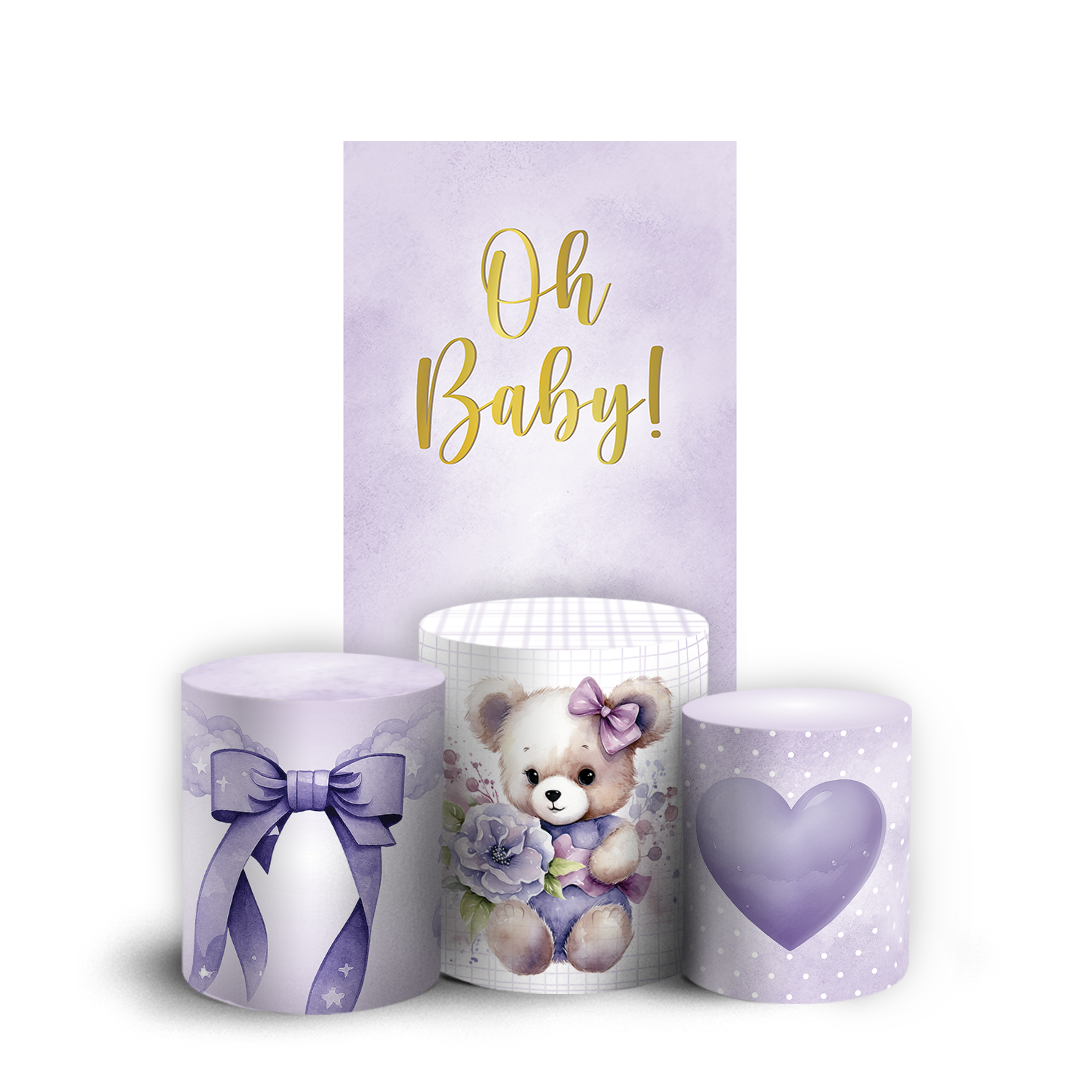 Faixa Lateral e Trio Cilindro Sublimado 3D Vest Facil - Ursinha Lilás