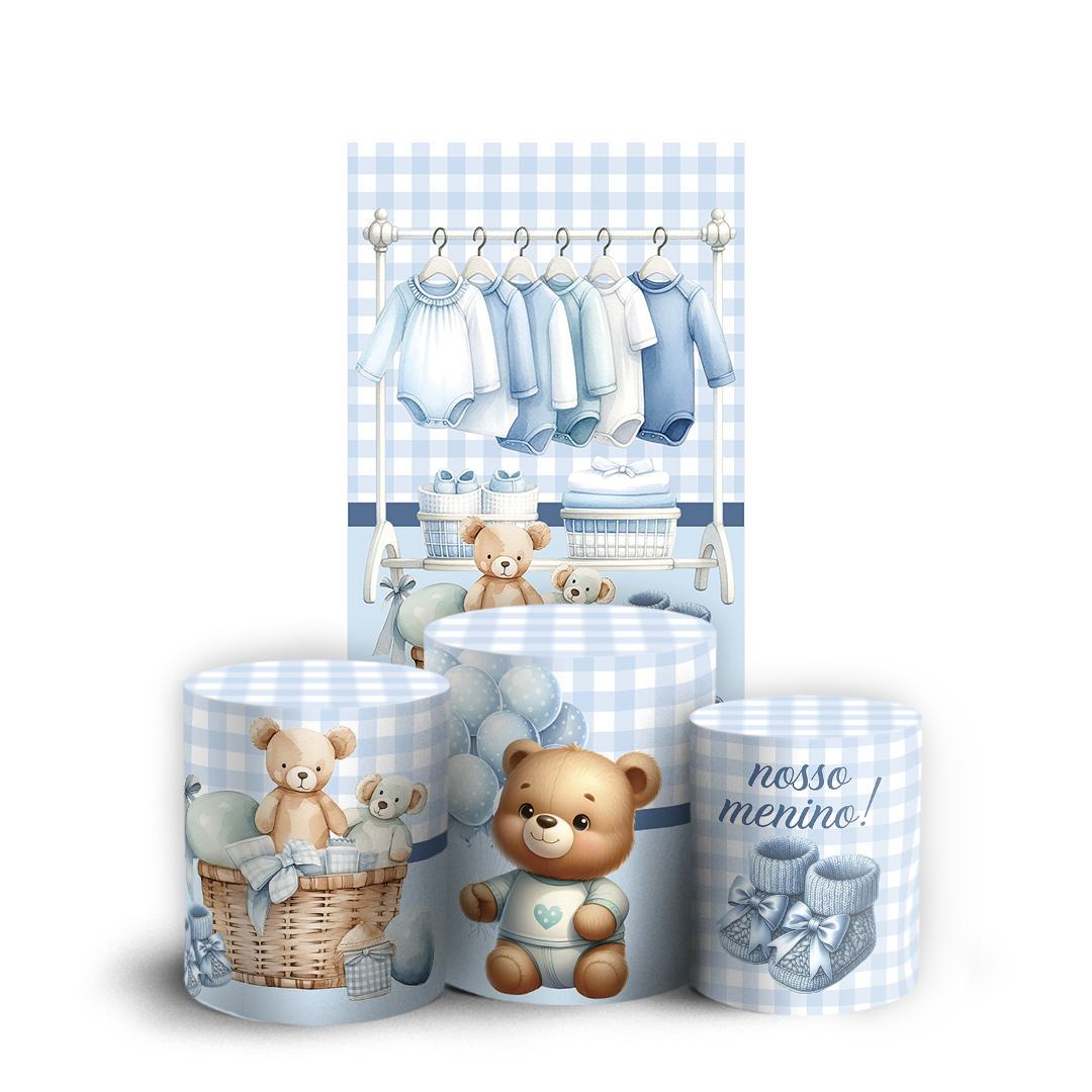 Faixa Lateral e Trio Cilindro Sublimado 3D Vest Facil - Ursinho Azul