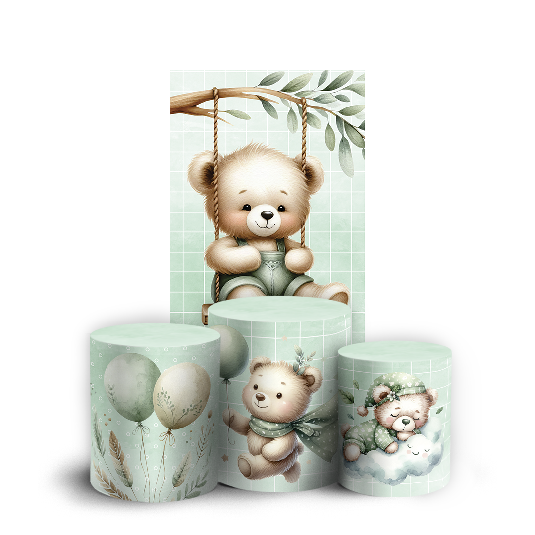 Faixa Lateral e Trio Cilindro Sublimado 3D Vest Facil - Ursinho Verde