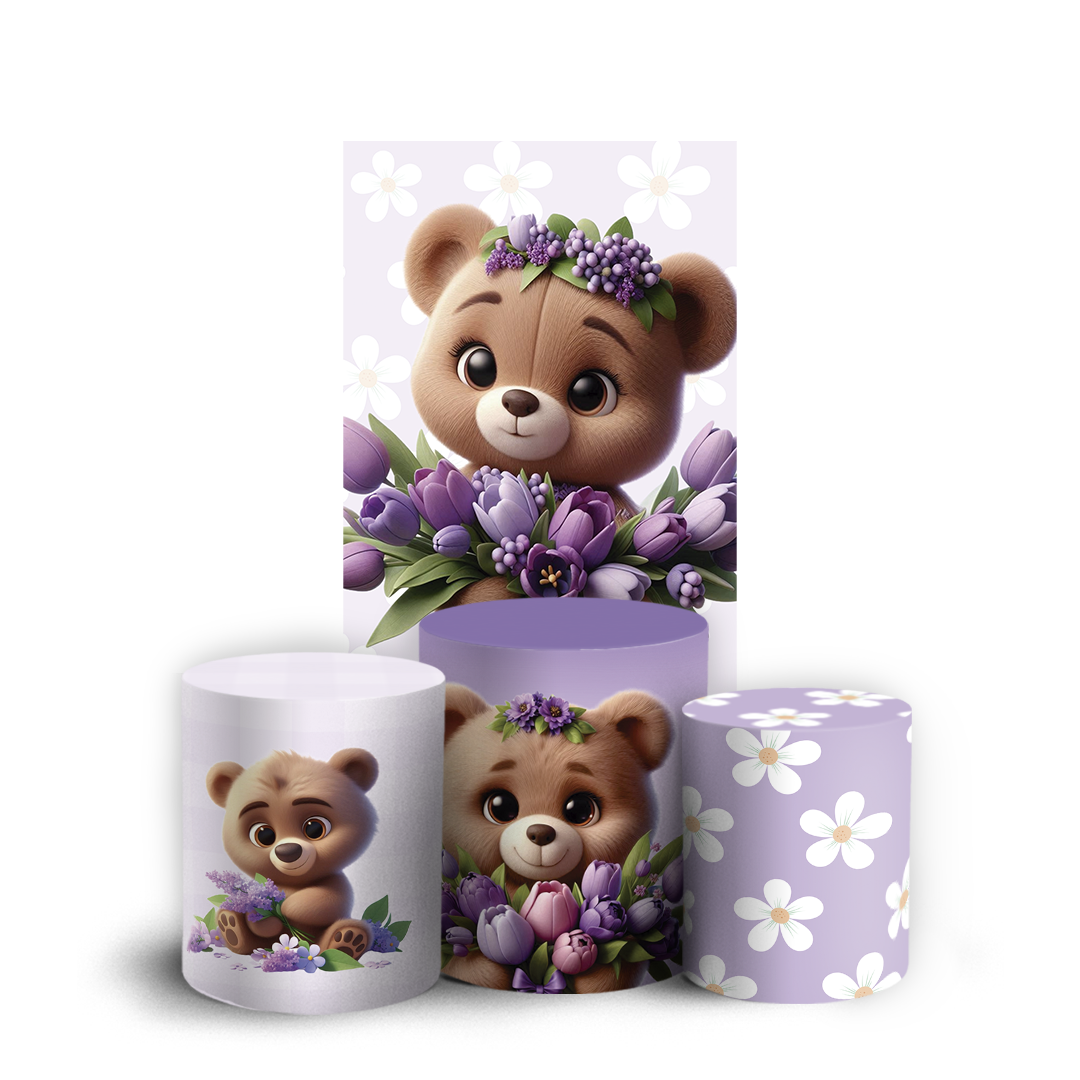 Faixa Lateral e Trio Cilindro Sublimado 3D Vest Facil - Urso Lilas